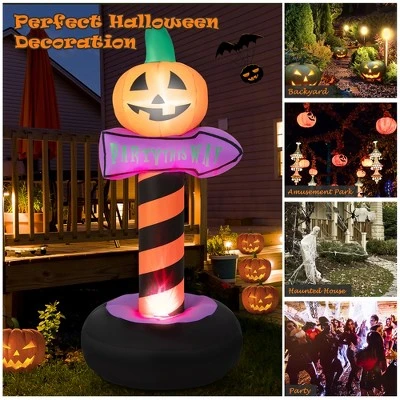 - Inviting Halloween Road Sign: This Halloween inflatable decoration is composed of a cute pumpkin with smile on face and a big road sign, writing “ PARTY THIS WAY” . It can guide your guests and dressed-up trick or treaters to your well-scripted Halloween party.