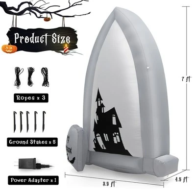 - Applicable to Various Places: The decoration with super light weight and compact size allow you to take it outside with ease. Coming with 5 ground stakes and 3 fastened ropes, this inflatable Halloween tombstone can be set up in multiple places, such as lawn, garden, backyard, amusement park and so on.
