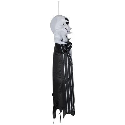 Set a spooktacular scene with this hanging Airblown® Inflatable Jack Skellington! Fans of The Nightmare Before Christmas will love this Jack Skellington inflatable that hangs from their rooflines, eaves or wherever you enjoy Halloween decorations. Blinking purple light add to the spooky effect. Setup is super simple. Just plug it in, hang it and watch the magic unfold. Display this Disney Halloween decoration as a standalone or combine it with other Airblown Inflatables to create a custom scene. Includes everything needed for easy outdoor setup.