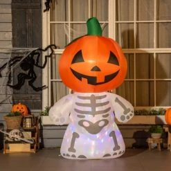 HOMCOM 7ft Tall Inflatable Halloween Pumpkin Reaper Light Up Yard Decoration with LED Lights and Fan