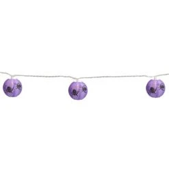 Northlight 10-Count Purple and Black Spider Paper Lantern Halloween Lights, 8.5ft White Wire