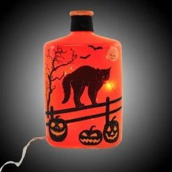 Stony Creek 8.0″ Halloween Pre-Lit Glass Bottle Moon Witch Bats – Novelty Sculpture Lights