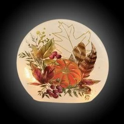 Stony Creek 6.0″ Fall Foliage Smal Round Orb Glass Pumpkin Leaves Light – Novelty Sculpture Lights