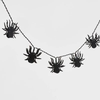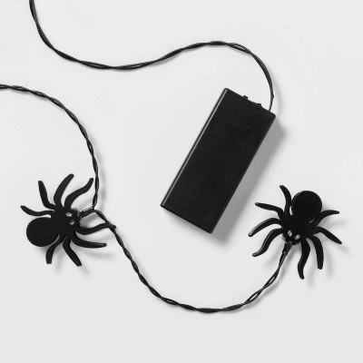 Put the perfect finishing touch on your spooky decor with these 10-Count LED Metal Spider Halloween String Lights from Hyde & EEK! Boutique™. Measuring over six feet in total length, this light string features 10 durable, long-lasting LED bulbs in creepy black metal spider frames hung on a black cord. Powered by two AA batteries (not included), the bulbs give off constant purple light to fill any corner of your home with an atmospheric glow.
