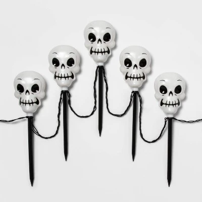 - Incandescent clear skull Halloween pathway lights