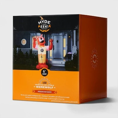 Place this 6-Foot Inflatable Animated Werewolf Halloween Decoration from Hyde & EEK! Boutique™ in your entryway, on the porch, or in your yard to add a creepy touch to your Halloween setup. This inflatable werewolf Halloween decoration showcases a colorful appearance and raised hands. Sitting at six feet tall, it moves and emits howling sounds, making it the perfect piece to spook friends or party guests.