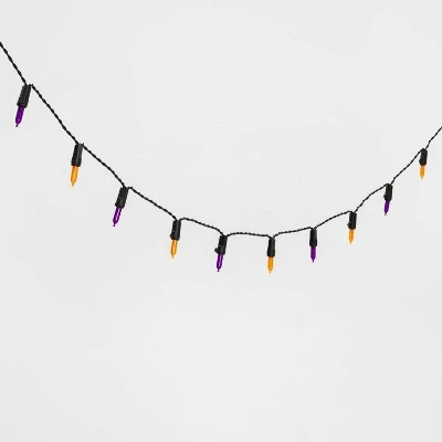 You’ll appreciate the additional lighting and convenience these 60ct LED Battery Operated Halloween Mini String Lights from Hyde & EEK! Boutique™ bring to your seasonal decor. Great for bringing a flexible and fun lighting option to your indoor space, these mini string lights consist of 60 LED smooth purple and orange bulbs on a black wire that give off a cool multicolored glow. Whether you string them along a mantel or place them inside a Halloween prop, you’ll love the way they glow.