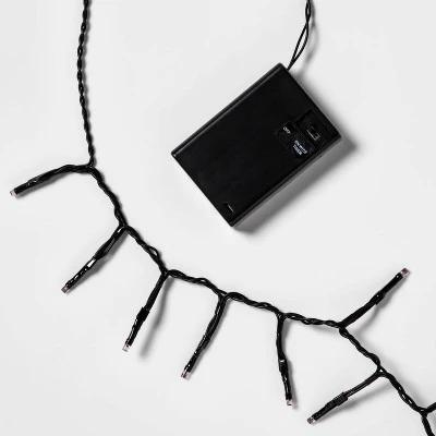 These versatile 60-Count LED Dewdrop Halloween Orange Garland Lights from Hyde & EEK! Boutique™ add instant magic to any indoor space. The delicate orange LED lights in a garland style with black wire look great draped on a mantel, framing a window or hanging above a bed. The attached battery pack requires three AA batteries (not included) and can be concealed within your decorations to let the lights truly stand out.