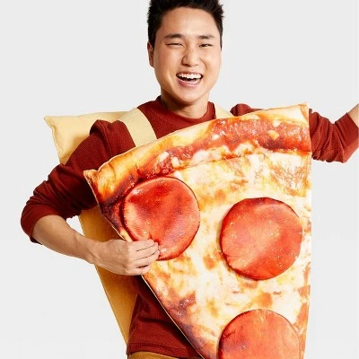 Let everyone know your favorite fast food by dressing up in the Pizza Slice Halloween Costume from Hyde & EEK! Boutique™. This pizza slice costume features cheese and toppings for realistic appeal, and is designed with straps to fits nicely around your body. Made with soft and lightweight fabric, this plush Halloween costume kit helps keep you comfy.