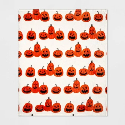 Stay cozy in Halloween style with this Jack-O’-Lantern Trio Printed Plush Halloween Throw Blanket from Hyde & EEK! Boutique™. This plush throw blanket is soft, snuggly, lightweight and easy to care for. Neatly finished with hemmed edging, it showcases a trio print of bright orange jack-o’-lanterns on a white backdrop for a playful festive-inspired look. Drape over the back of your sofa, lounger or armchair to use when needed.