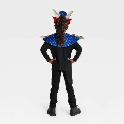 Your kid will be ready for any Halloween party with the Dragon Halloween Costume Accessory Kit from Hyde & EEK! Boutique™. This dragon costume accessory kit includes a cape and a mask with horns for a fiery look. Made with a soft and lightweight fabric, this Halloween costume accessory kit offers comfort, and is suggested for ages 3 and above.