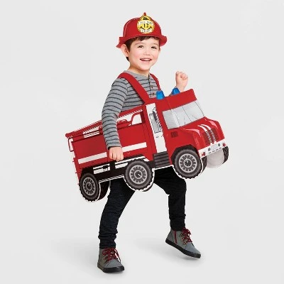Your kiddo will be ready for the rescue at Halloween bashes wearing this Light Up and Sound Rider Fire Truck Halloween Full Body Apparel Costume from Hyde & EEK! Boutique™. Mimicking the shape of a fire truck in red, this fire truck rider costume is complete with blue lights and black tires for realistic appeal. It comes complete with a vest and a hat to add a perfect finish to the rider look. And with the light up and sound features, this costume is fun to wear at all the costume parties.