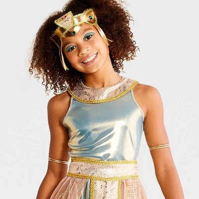 This Queen of the Nile Halloween Costume Dress with Accessories from Hyde & EEK! Boutique™ gives your kid a cool and colorful costume option for Halloween. This Halloween costume dress comes in blue and gold-tone shimmery hues, and it includes a gold headpiece with faux gemstones to complete the look. Made with a soft and lightweight fabric, this historical period-theme costume dress is sure to help them stand out during Halloween festivities.