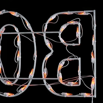 This Halloween decoration features strong single frame powder-coated steel construction designed in the outline of a sign reading BOO!. Around the frame are wrapped a total of 96 LED lights that glow brightly using a combination of orange and green bulb colors. This fun and unique seasonal trimming will brighten your Halloween festivities for years to come. For indoor or outdoor display.