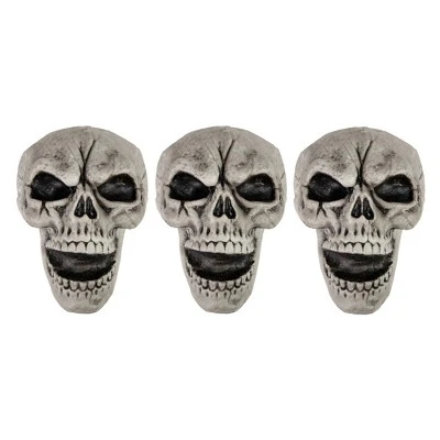 Transform your yard into a spooky graveyard with this set of skull outdoor Halloween decorations! Made with durable and weather-resistant materials, these eerie skull stakes are perfect for adding a touch of macabre to your outdoor Halloween decor. Easy to install and secure in place, these skull stakes are sure to send shivers down the spines of trick-or-treaters and guests alike. Features:Set of 3 skull yard stakesEach skull includes one 8″ stakeEasy to install and secure in place, so you can quickly set up your outdoor Halloween displayDesigned to withstand the elementsRecommended for outdoor useDimensions: Skull only: 7″H x 5.5″W x 4.75″DSkull with stake: 15″ highMaterial(s): plastic