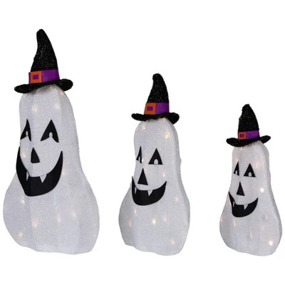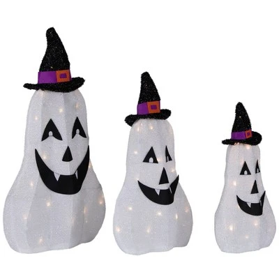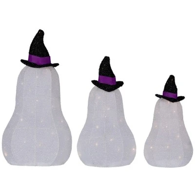 - Set Of 3 Ghostly Pumpkins Halloween Display