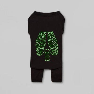 Let your pet glow in the dark while looking like part of the family by dressing them in the Glow-In-The-Dark Skeleton Halloween Matching Family Cat and Dog Pajamas from Hyde & EEK! Boutique™. These black matching family cat and dog pajamas feature a graphic of a skeleton that glows in the dark for a spooky look. Made with soft fabric, these washable PJs fit over their head and front legs, and they’re designed with an open underbelly for extra comfort. Have your whole family wear the union suits from the Glow-In-The-Dark Skeleton Halloween Matching Family Union Suit Collection to create a coordinated look for the Halloween photo ops.