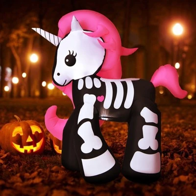 - Perfect Halloween Decoration: The 5.5ft tall inflatable decoration is a good choice to add to the holiday nighttime display. It has a cute skeleton unicorn appearance, which is with pink hair to highlight the Halloween theme. With the lovable design and classic Halloween element, the decoration will create an unparalleled holiday ambience.