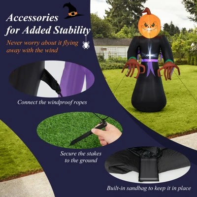 - Complete Accessories: The Halloween pumpkin reaper contains multiple built-in components like zipper and air blower for convenience. In addition, the package provides 4 ground stakes, 4 tether ropes and 1 UL approved adaptor to help you complete assembly and ensure high stability.