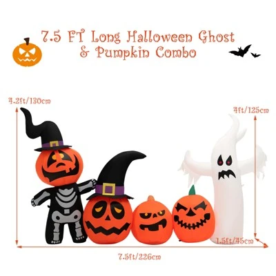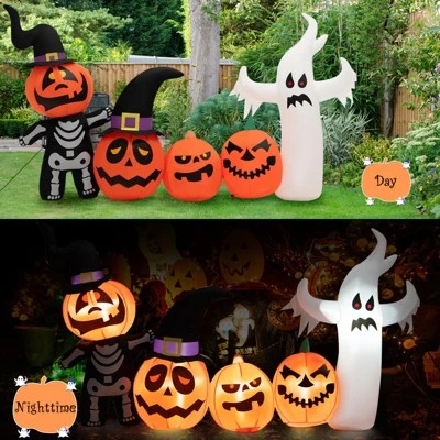 - Various Halloween Elements Included: Our adorable Halloween decoration set combines a variety of Halloween characters, including skeletons, witch hats, Halloween pumpkins and ghost. It is large enough and brightly colored. Just put such a set of inflatable decoration in your courtyard, then there will be a joyful atmosphere of Halloween!